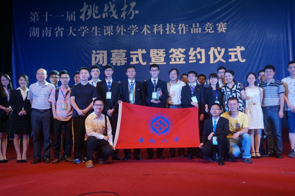 本届“挑战杯”竞赛由共青团湖南省委、省教育厅、省经信委、省科技厅、省科协以及省学联联合举办。大赛自今年3月启动以来,累计收到参赛作品4000余件。经团队申报、校级初评、资格审查和专家盲评等环节,来自全省51所高校的377件作品进入决赛。决赛共评选出特等奖作品10件、一等奖作品30件。我校《“四个全面”推进背景下湖南民族教育政策实施现状研究——基于湖南6个世居少数民族聚居区等地域的调研》、《敢问连片特困地区扶贫路在何方?——基于桑植县特色产业扶贫现状的调研报告》获得竞赛特等奖,《低成本富钠正极在钠离子电池与锂离子电池中的应用》、《MyoD对乳腺癌细胞增殖的抑制作用》、《基于电控永磁铁的足式管道机器人》等三件作品获一等奖。此外,我校《基于APM平台可自主续航的无人侦察机》因其良好的实用价值、广阔前景,与香港润达有限公司签订了300万的意向合作投资合同;李华东和李斌两位老师被评为优秀指导教师。