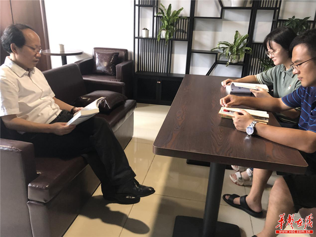 午休时,柴立元和年轻教师一起阅读人文书籍。