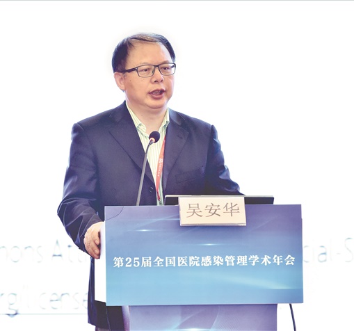 2018年9月26日,吴安华在第25届全国医院感染管理学术年会上发言。 通讯员 摄